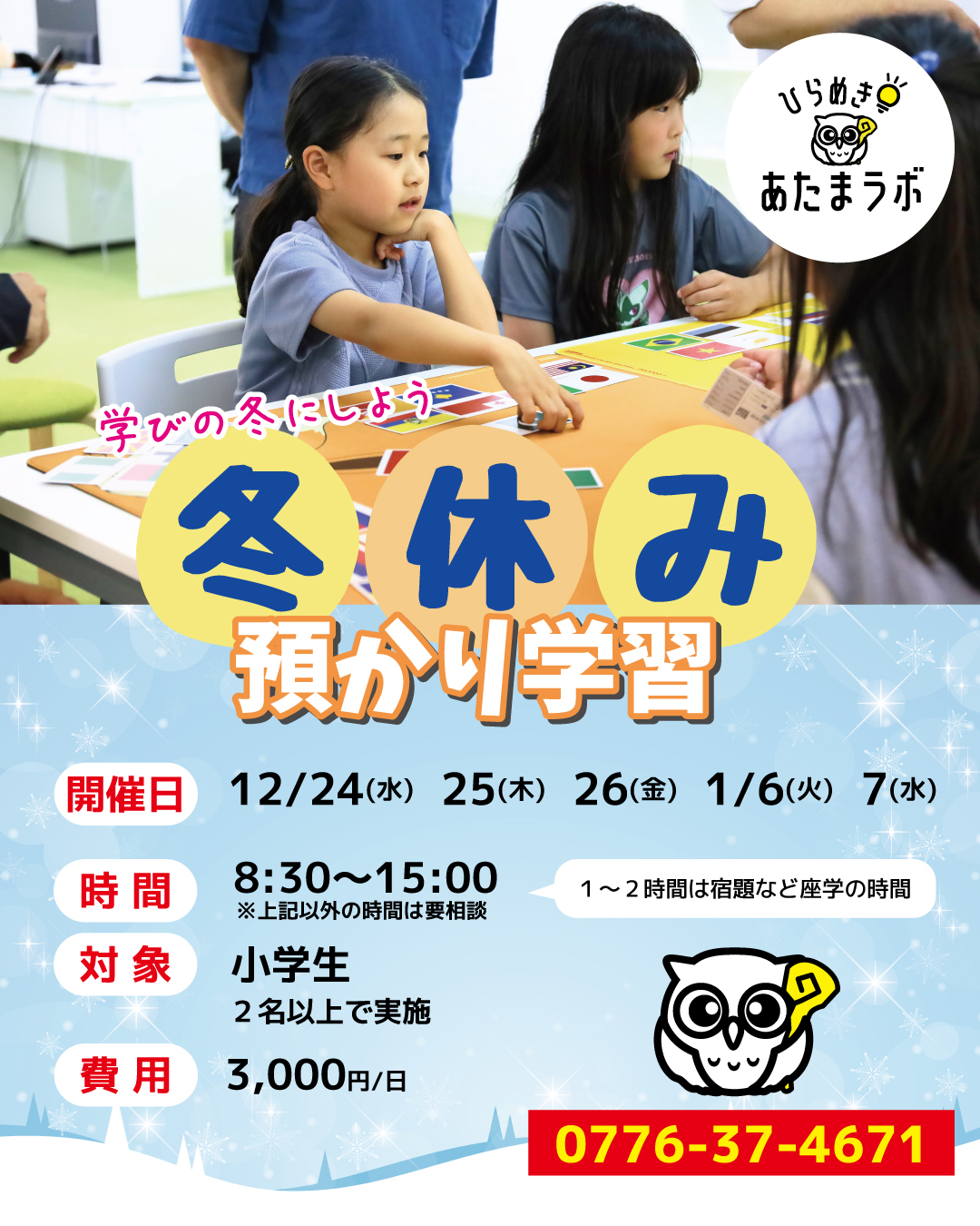 今回も短い期間となりますが、この期間にこれまでの一年間の復習や、パズルやボードゲーム、工作などで、手と頭を使い、しっかり頭を使いましょう。