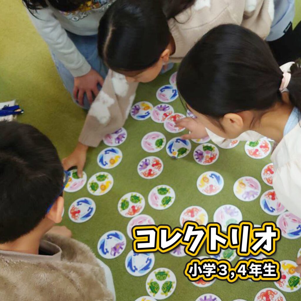 コレクトリオは子どもたちだけでプレイできるボードゲームで、楽しくみんなで最後の余った時間プレイしていました。