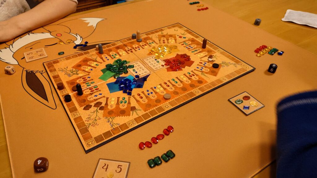 簡単に説明すると、すごろくゲームなんですが、相手の欲しいものと自分の欲しいものを天秤にかけ、交渉しながらWinWinの関係を作って得点を取るゲームになっています。
